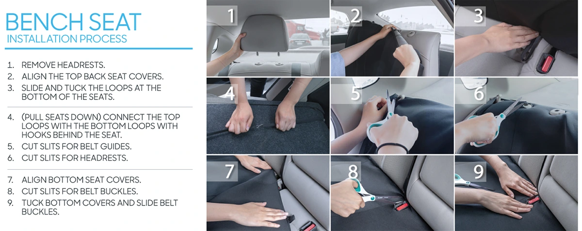 টেকসই প্রতিরক্ষা: উচ্চ-মানের উপকরণ ময়লা, ছিটকে পড়া এবং পরিধান প্রতিরোধ করে, OEM আসন এবং গাড়ির পুনর্বিক্রয় মান সংরক্ষণ করে।