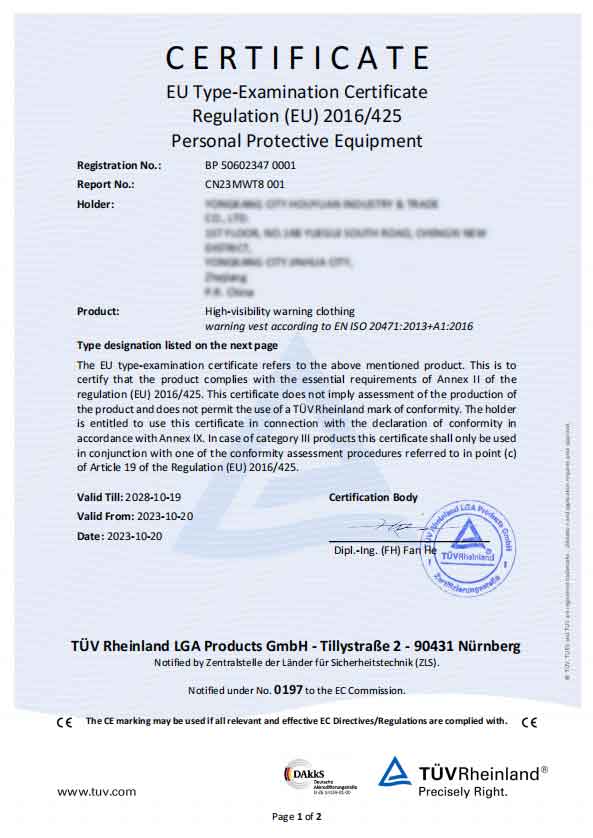 প্রশ্ন 2: আপনার নিরাপত্তা প্রতিফলিত সতর্কীকরণ ভেস্টগুলি কি EU এবং US নিরাপত্তা মান মেনে চলে?