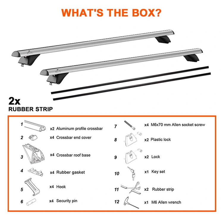 এই ছাদ র্যাক ক্রস বারগুলি সহজ ইনস্টলেশন: হেক্স রেঞ্চ 10-মিনিট সেটআপের জন্য অন্তর্ভুক্ত; ধাপে ধাপে চিত্র সহ ম্যানুয়াল।