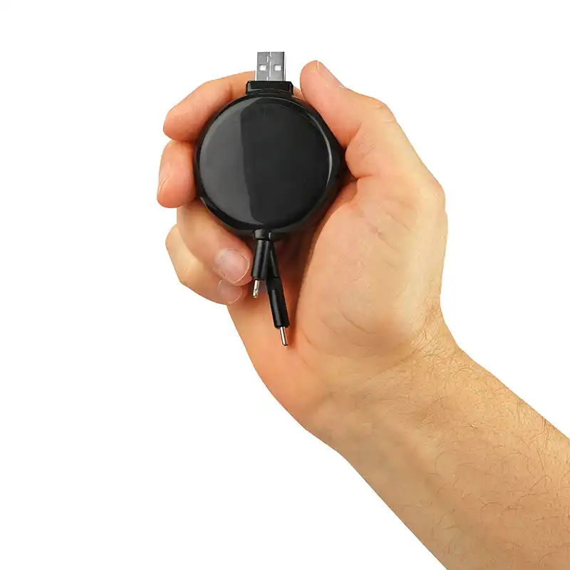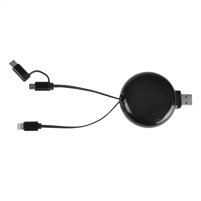 সর্বাধিক সামঞ্জস্যের জন্য একটি একক প্রত্যাহারযোগ্য রিলে সমন্বিত লাইটনিং, মাইক্রো-ইউএসবি এবং ইউএসবি-সি সংযোগকারী সমন্বিত একটি বহুমুখী 3-ইন-1 সমাধান৷